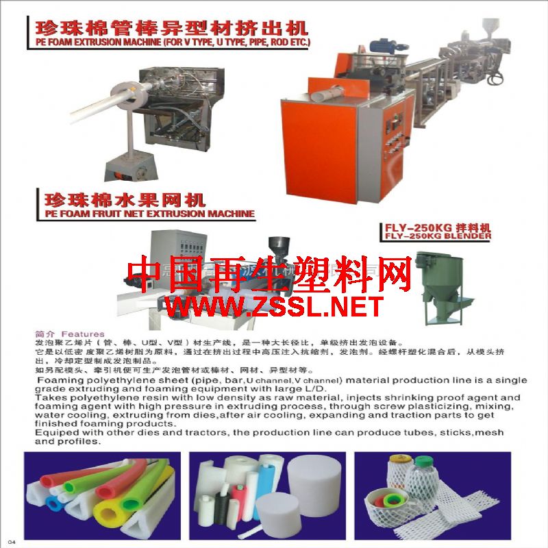 如另配模头、牵引机便可生产发泡管材或棒材、网材、异型材等。